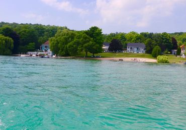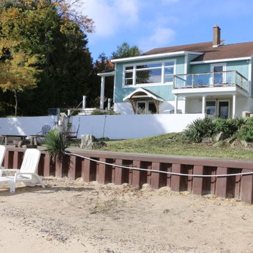 The Bluewater Lodge is a large villa located right on the waterfront on lovely Suttons Bay. Modern interiors, nicely furnished and appointed. Linens and towels included. Direct Beachfront, Beautiful Sandy Beach, Built in patio fire pit with firewood available. Spacious interiors with vaulted ceilings. Modern conveniences, wireless internet, 2 giant HD smart TV's. Leelanau Trail 1/4 mile away. ( over 40 miles of paved trail through forests, vineyards and orchards) Casino and ,Wineries and coastal town of Suttons Bay just 1.5 miles. Leland , Lake Leelanau, Glen Arbor, National Sleeping Bear Dunes Park and Northport are just a short hop away. You can rent just about anything from our boat rental purveyors. ie. jet skis, pontoon boats, kayaks , canoes and bikes and they will all deliver right to your beach.